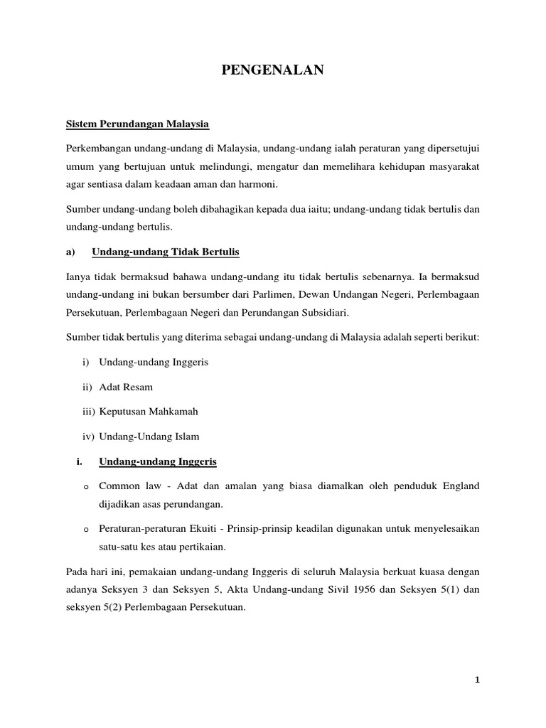 Topik 1 Sistem Perundangan Malaysia Only You My Law