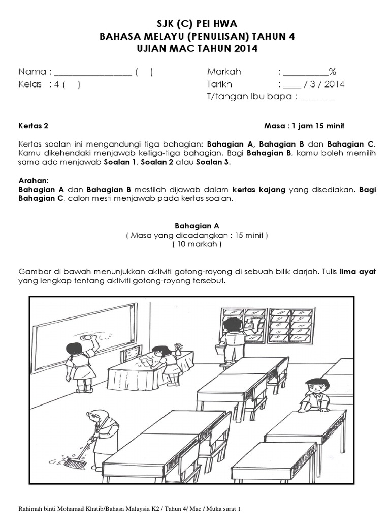 Contoh Soalan Bahasa Melayu Tahun 4 Sjkc Kuora D
