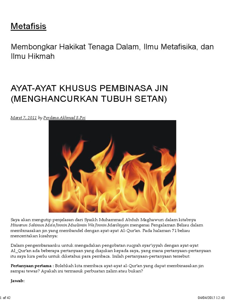 Ayat Ayat Khusus Pembinasa Jin Menghancurkan Tubuh Setan Metafisis