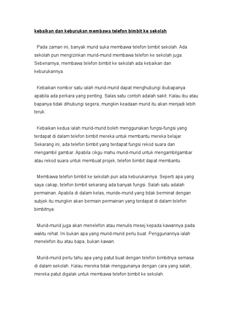 Kebaikan Dan Keburukan Menggunakan Telefon Bimbit Ke Sekolah