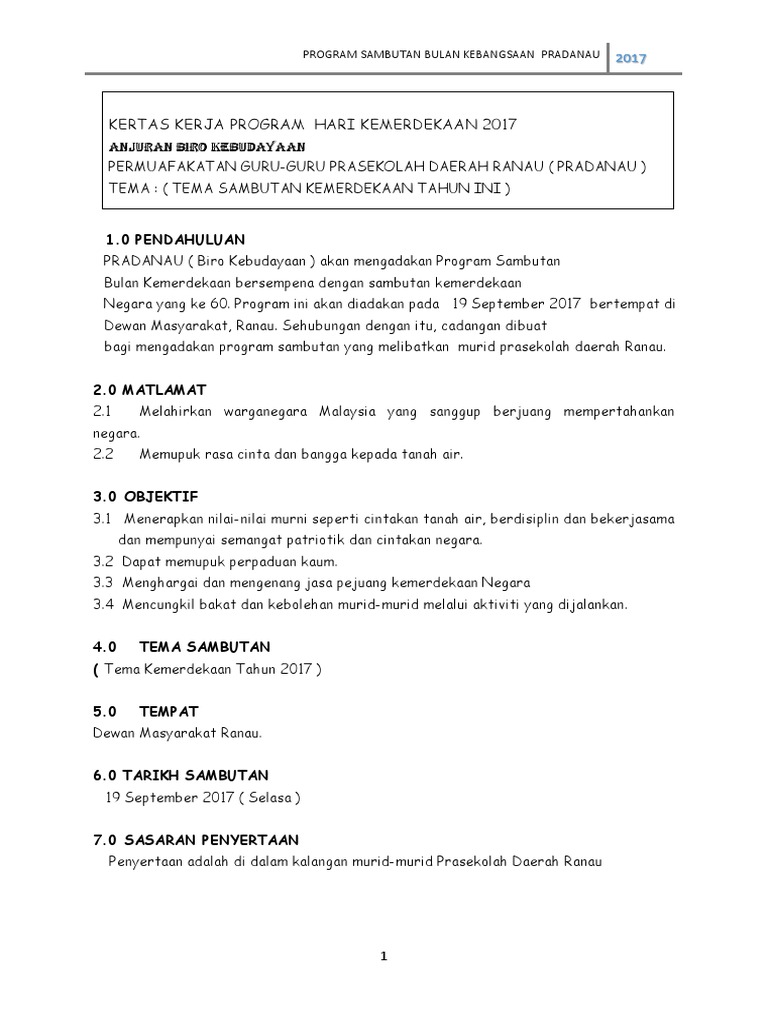 Kertas Kerja Cadangan Sambutan Bulan Kemerdekaan 2018 Pages 1 13 Text Version Anyflip