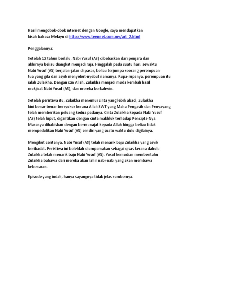 Blog Sampah Info Kisah Sebenar Yusuf Dan Zulaikha