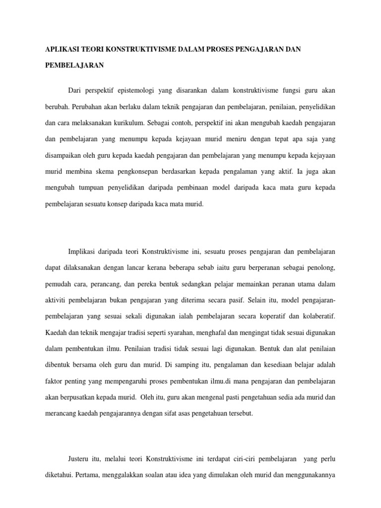 Aplikasi Teori Konstruktivisme Dalam Proses Pengajaran Dan Pembelajaran