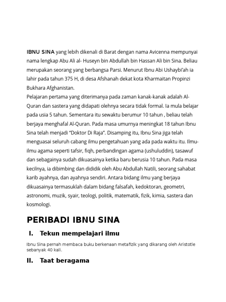 Doc Sejarah Dan Sumbangan Ibnu Sina Terhadap Perkembangan Peradaban Islam Di Dunia Athirah Rhyu Academia Edu