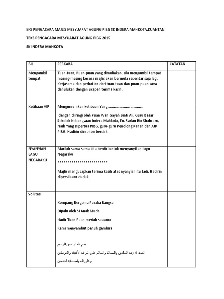 Contoh Teks Pengacara Majlis Mesyuarat Agung Pibg Sk Indera Mahkota