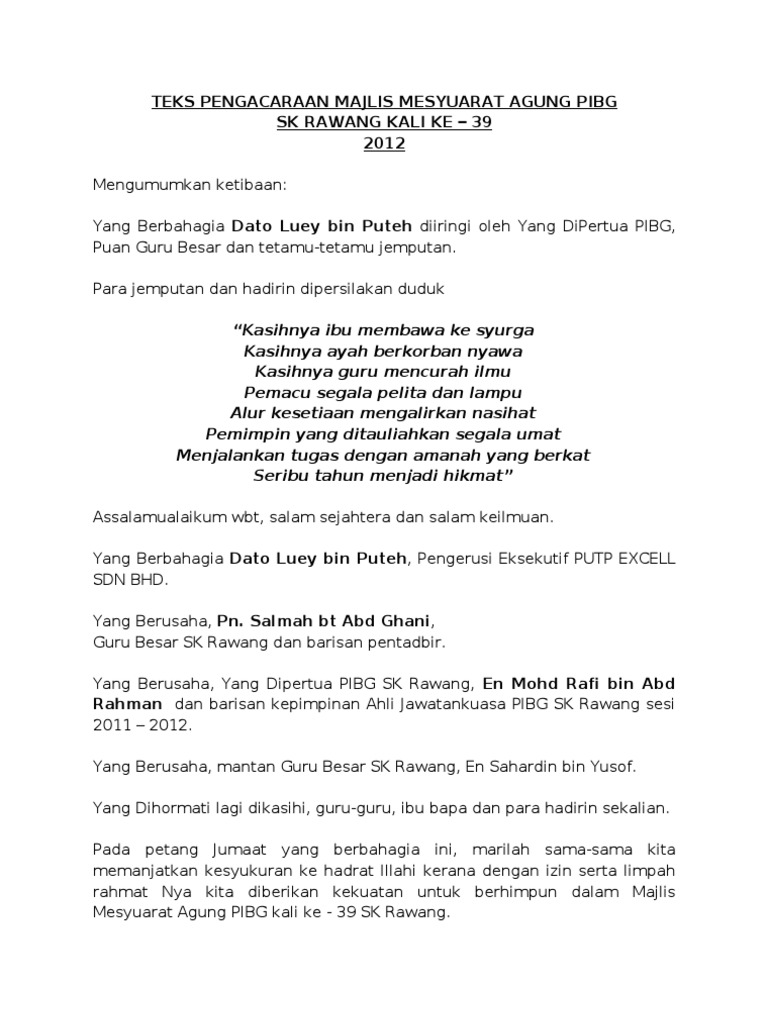 Teks Pengacara Majlis Mesyuarat Agung Pibg Pdf