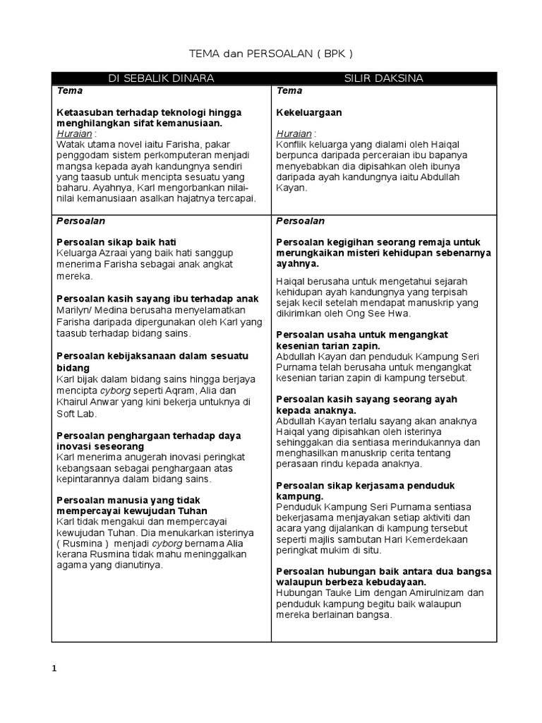 Di Sebalik Dinara Silir Daksina Tema Dan Persoalan Bpk